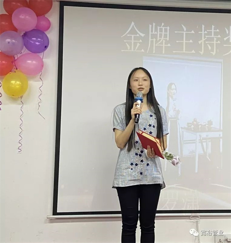 (寬裕銷售經(jīng)理毛鳳明女士在臺上做工作總結(jié)展望)