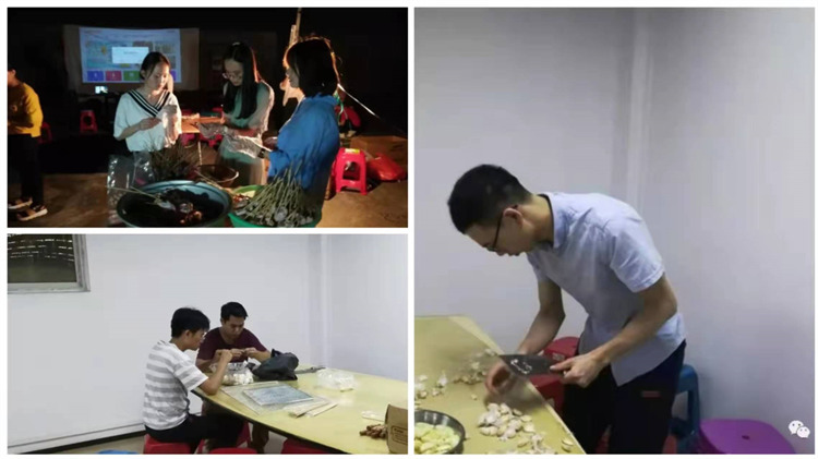 為了我們的家人們能早早吃上燒烤,我們下午三點(diǎn)便開始著手準(zhǔn)備,出門購買食材,然后做調(diào)味料,穿串子......準(zhǔn)備完畢后,立馬開始了我們的燒烤活動(dòng)。大家一會(huì)兒加炭,一會(huì)兒給食物翻身,一會(huì)兒刷油,一會(huì)兒加調(diào)料……忙得不亦樂乎。