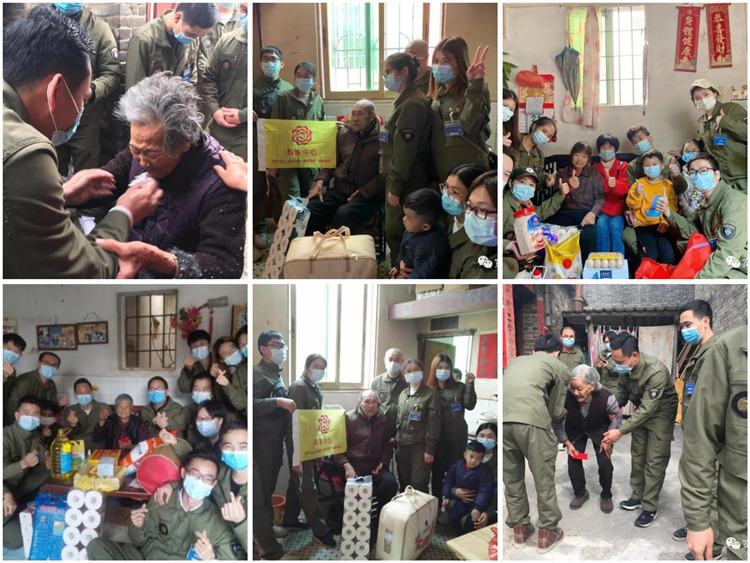 ▲本次老鷹的學員一共60名隊員參與探訪活動,分為8組,分別探訪了丹灶鎮(zhèn)的銀河、西城、仙崗、石聯(lián)、橫江、新農(nóng)、南沙,共計7個村居32戶(困難、孤寡、獨居、高齡)長者。隊員們?yōu)殚L者們精心選購了:大米、山藥面、食用油、牛奶、麥片、紙球等日常食用品和一次性醫(yī)用口罩、消毒液等物資。