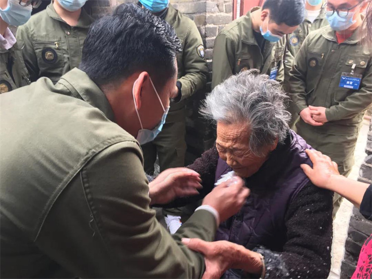 ▲突擊隊的武一為婆婆擦眼淚。婆婆有3個女兒1個兒子,可是她卻只有一個人住在一間已經(jīng)破敗不堪的小房子里,里面?zhèn)鱽黻囮嚨膼撼?。她頭發(fā)很長,腿有撞傷流血而未清除的淤血。她一直對我們說感謝,動情處熱淚凝眶,見者無不動容!與物質(zhì)相比,更多的老人家們更需要的是親人,子女的陪伴和關(guān)愛!一直崇尚以孝為先的社會,原來依然有那么多不為人知的“隱秘的角落”!