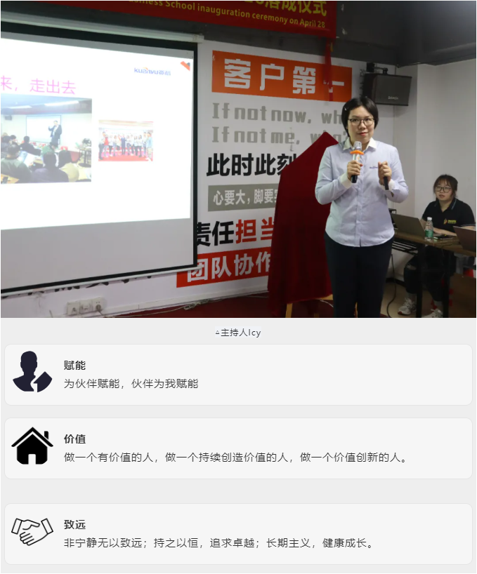 在本次揭牌儀式中,主持人Icy為大家隆重介紹了到場的嘉賓及寬裕商學院的基本情況。