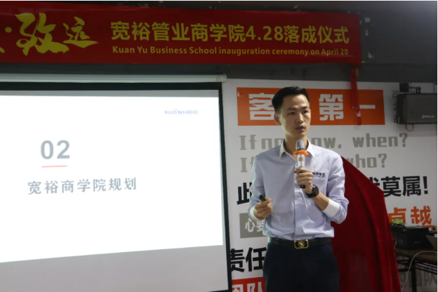 揭牌儀式中,寬裕管業(yè)總經理黃寬銘先生對商學院的規(guī)劃進行了介紹,并說道:寬裕成立于2010年,基本上最早的一批人都是“草根”,但是我們又有一顆不平凡的心,不平凡的夢,這就是我們打造管裕商學院一個非常重要的原因,只有我們寬裕人持續(xù)學習,持續(xù)提升,才能去完成我們偉大的愿景,我們要成為一家世界級不銹鋼全鏈制造與服務提供商,這對于寬裕人的品質要求是非常高的,把社會上好的東西帶進我們公司,在這個過程中,我們也會邀請各個行業(yè)的大咖過來分享。相信我們不斷持續(xù)學習,未來必定會在行業(yè)內有一定的影響力。商學院的建設任重道遠,我是第一屆院長,希望未來有更多的院長,帶領寬裕人不斷進步不斷成長,培養(yǎng)出一批又一批獨特的寬裕人才,相信未來的寬裕人才濟濟。