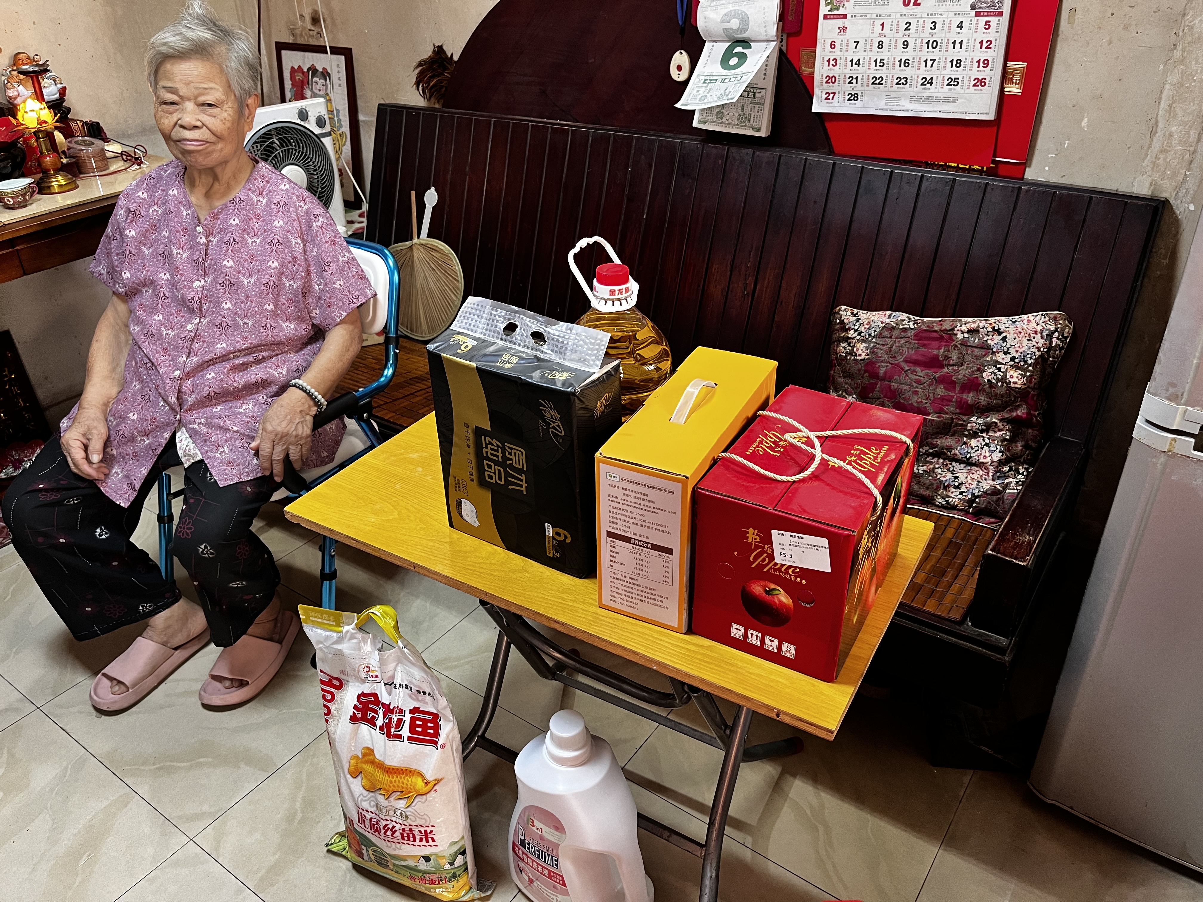 精心挑選的柴米油鹽、新鮮可口的營養(yǎng)果蔬、日常使用的清潔紙巾、一年分量的洗衣液……每一樣都精挑細(xì)選,為老人生活增添亮麗色彩。